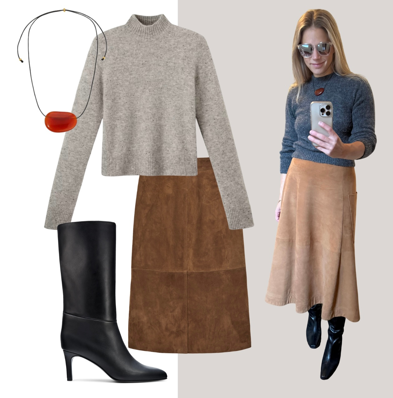 A halfway-to-fancy day! Man, these in-between outfits pop up a lot, and I’ve really been leaning into my formula. I switched it up with my mom’s vintage slouchy knee-high boots, which were so comfortable. Today was extra fun because I got to hang with